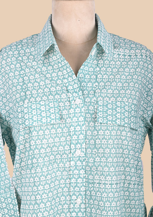 Blue Cotton Shirt Coord Set