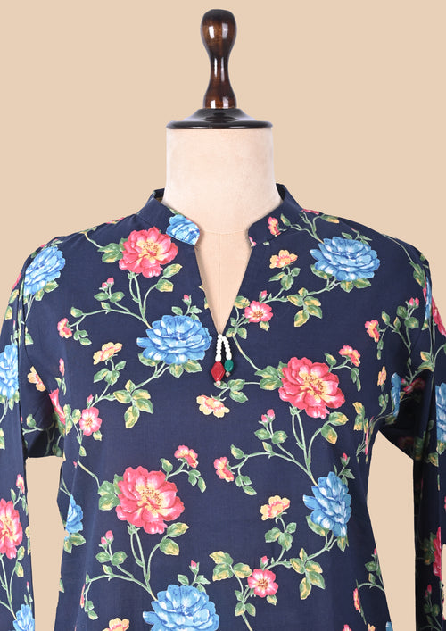 Blue Cambric Cotton Kurta Set